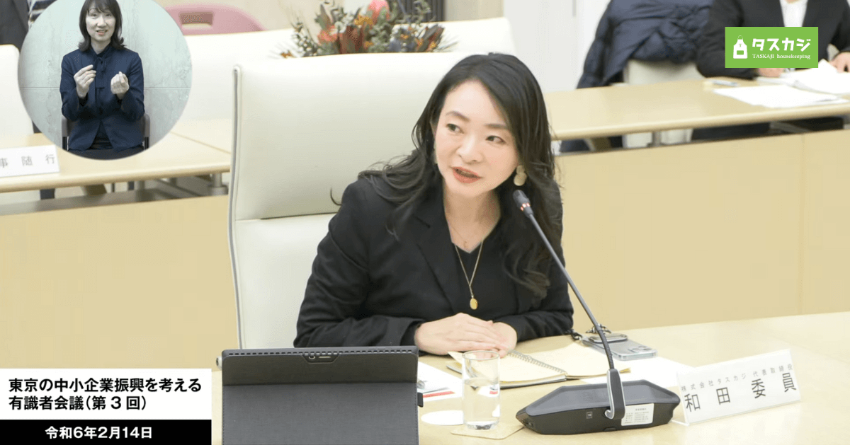 令和5年度 東京都「東京の中小企業振興を考える有識者会議」の第3回が2月14日(水)に開催され、委員を務めるタスカジ代表 和田が出席いたしました。本会議は、中小企業の経営や働き手の実情などに詳しい様々な有識者との意見交換を通して、中小企業振興施策を効果的に進めることを目的としています。