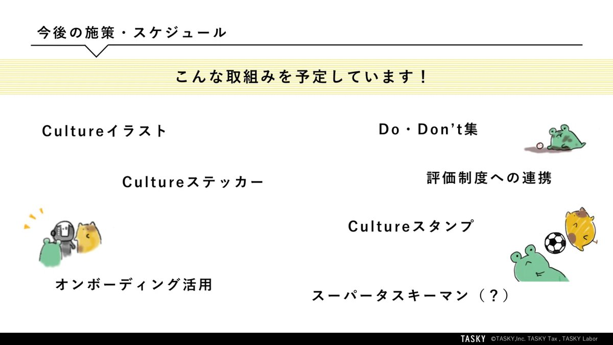 いずれも既にタスキーに根付いている文化ではありますが、今回改めて明文化をしたことで、今後10年20年と残っていく組織文化となることを願っています!