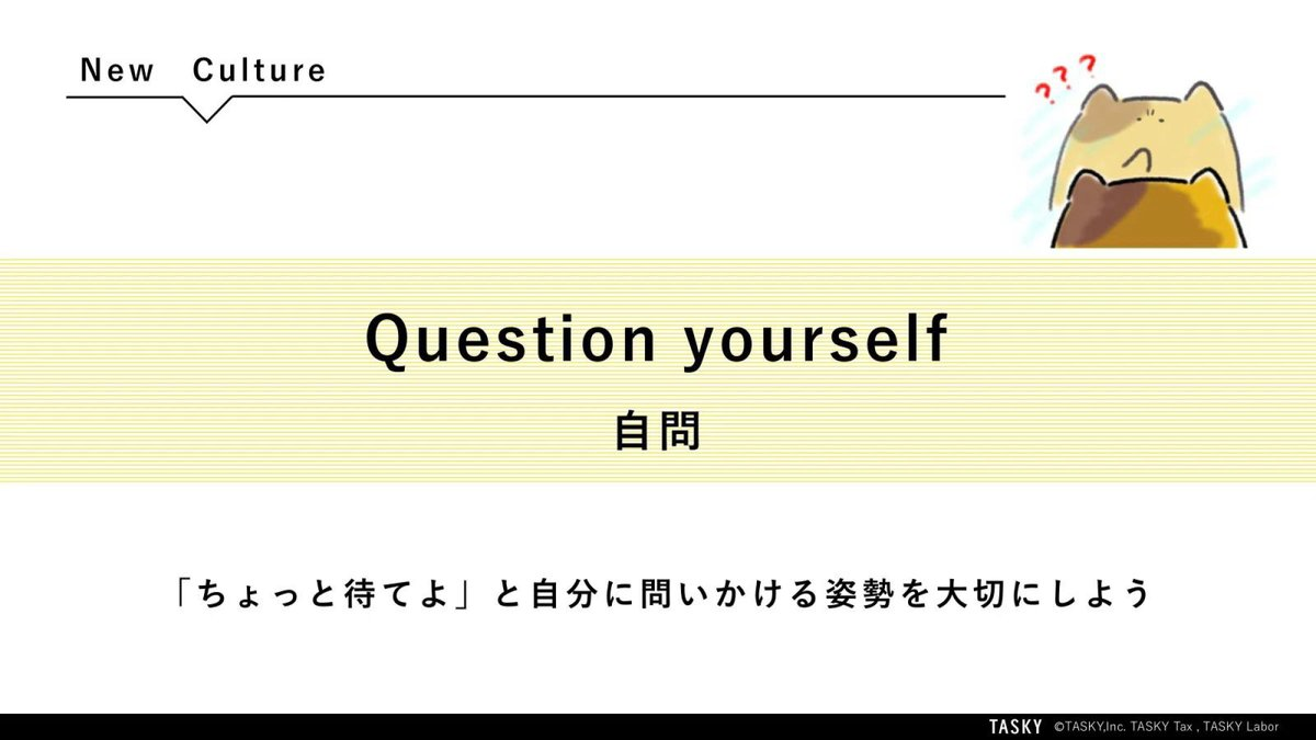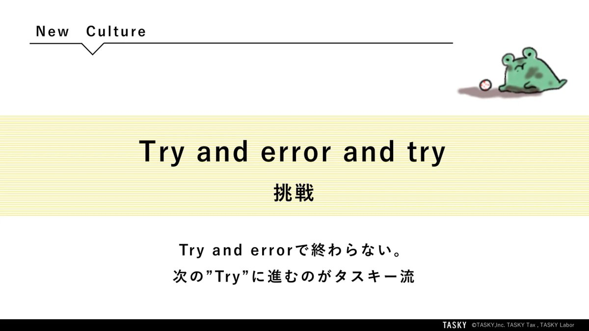 その目的を果たすために、これから新しいValueとCultureを、タスキー全員で自分のものにしていきたいと思います(主人公であれですね!)