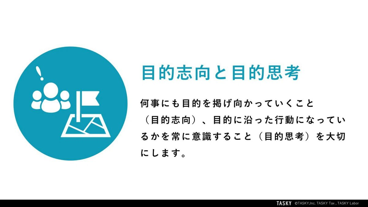 これから多様な人材にタスキーにジョインしてもらい、それぞれが個性を発揮してチームとして力を発揮していくるために、全員の目線が「目的思考」で揃っている必要があります