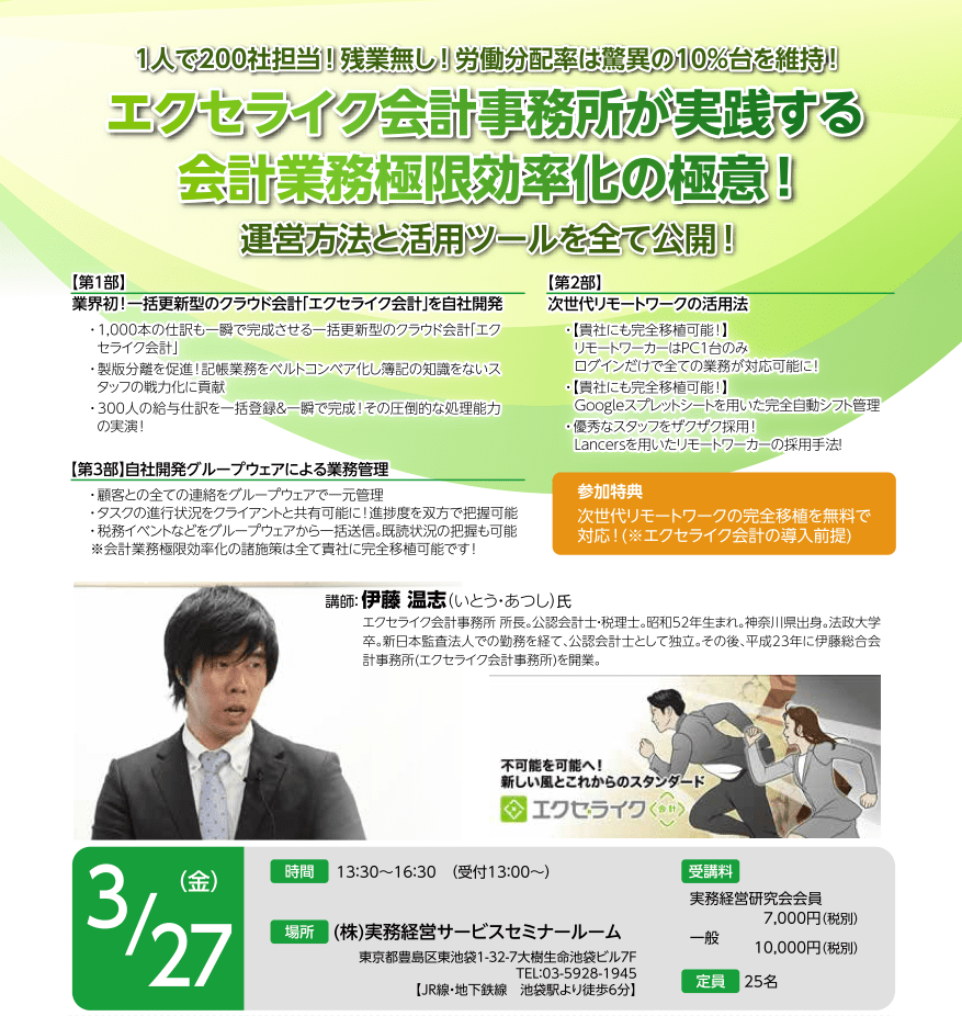 これが出来るのは、クラウド会計「エクセライク会計」を自社開発し、1人あたりの生産性を上げていることと、業務に必要なものはすべてクラウド化(業務DX化)しているためです。