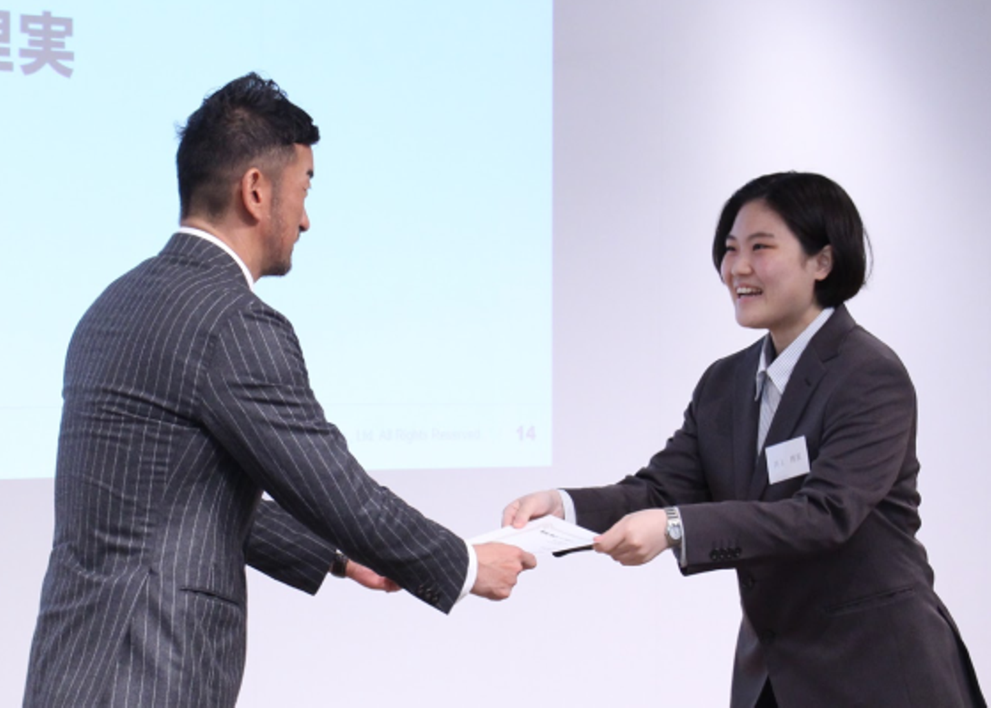 “この入社式を通して「一緒に背負い、戦っていけるメンバー」と感じた。入社してくれたことに感謝すると共に、社会からの大きな期待と責任を背負う覚悟を持ち、会社を背負える人材になって欲しい。”
