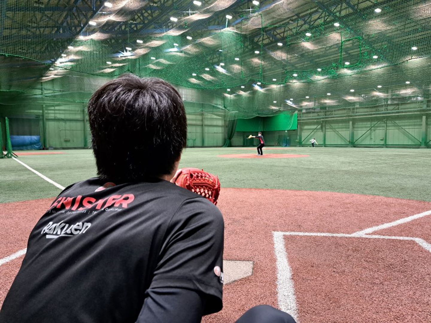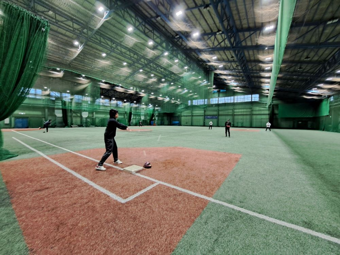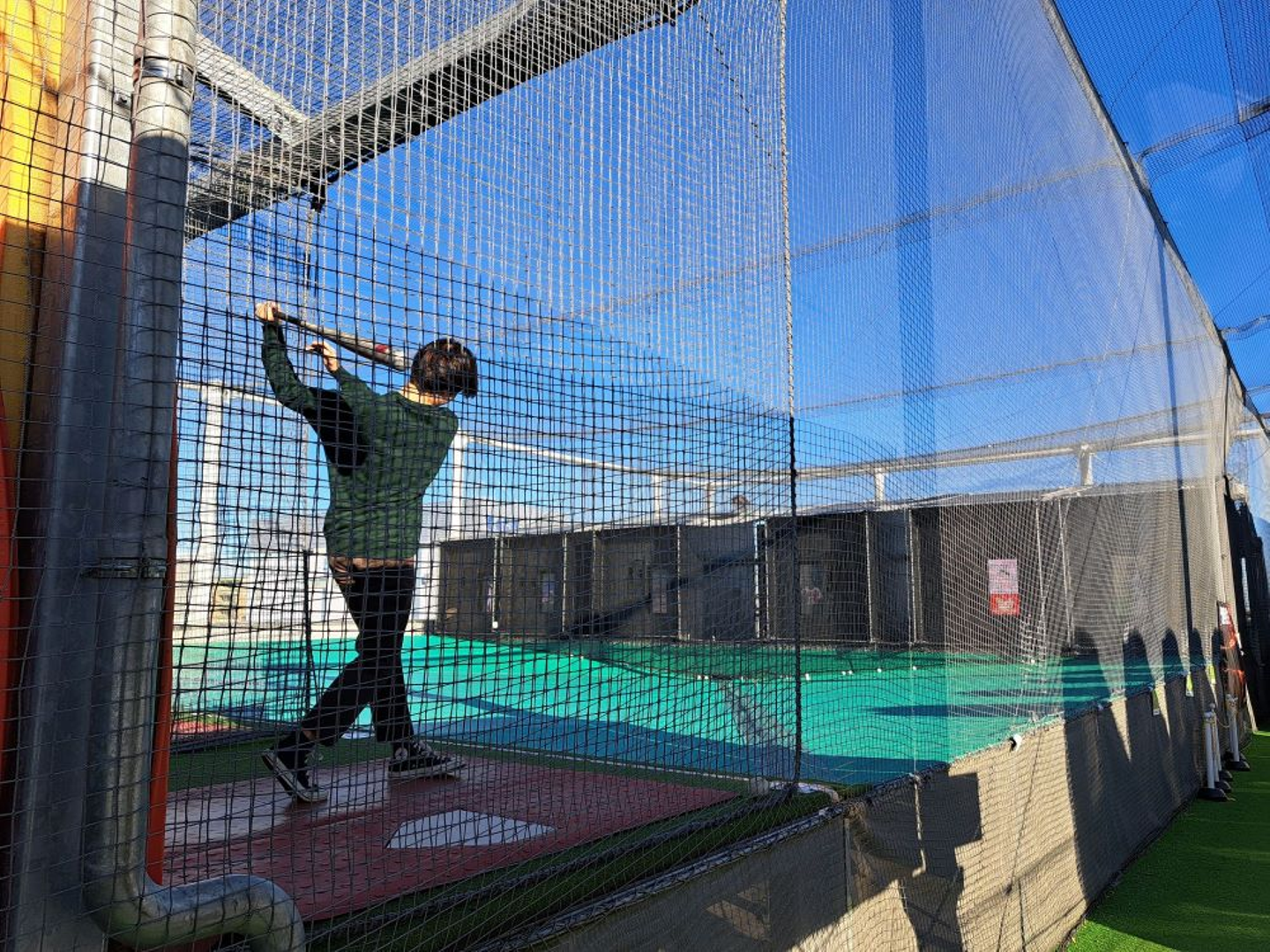 購入後、屋上のコートを借りてキャッチボールやバッティングの練習などしました。