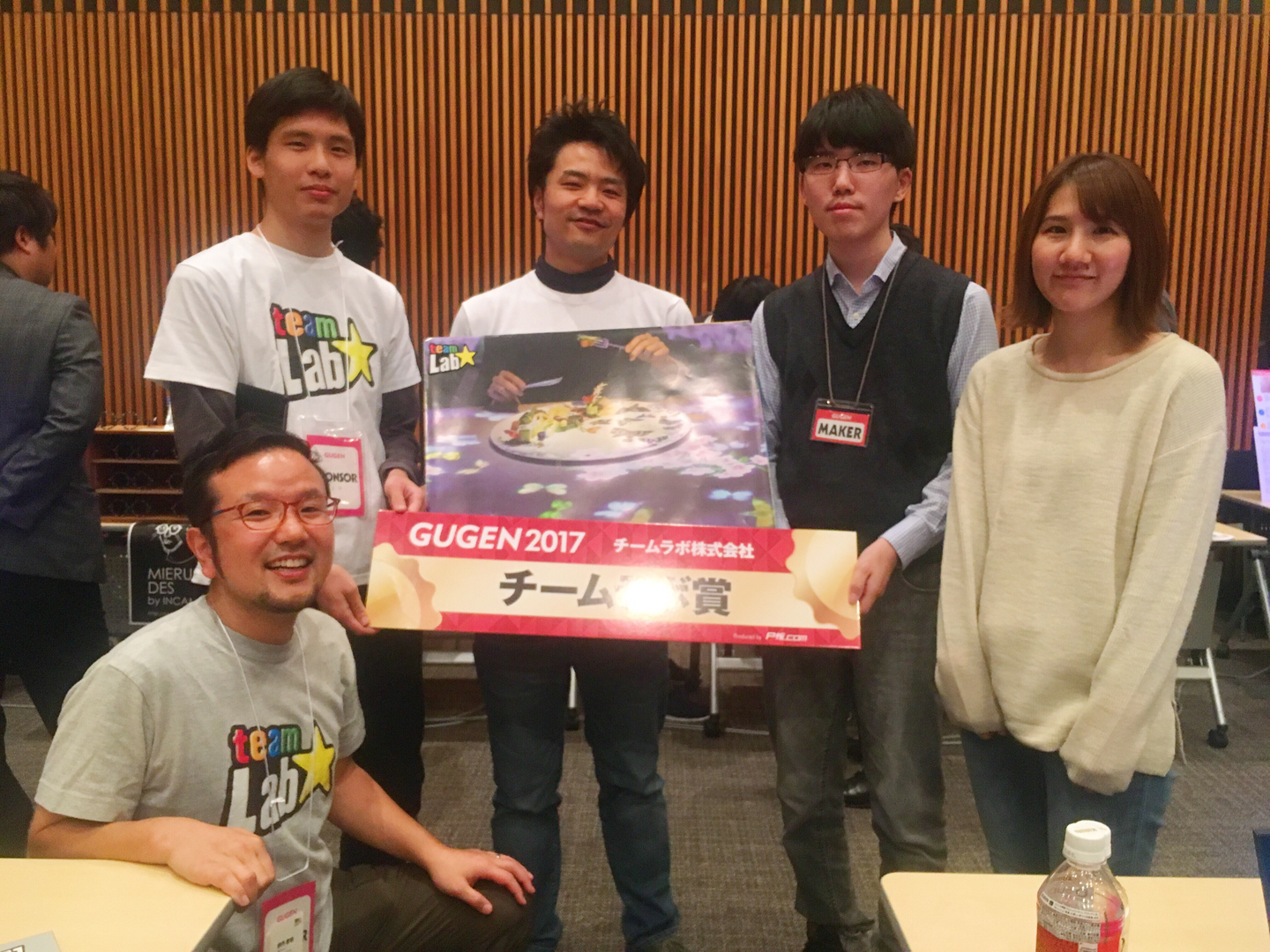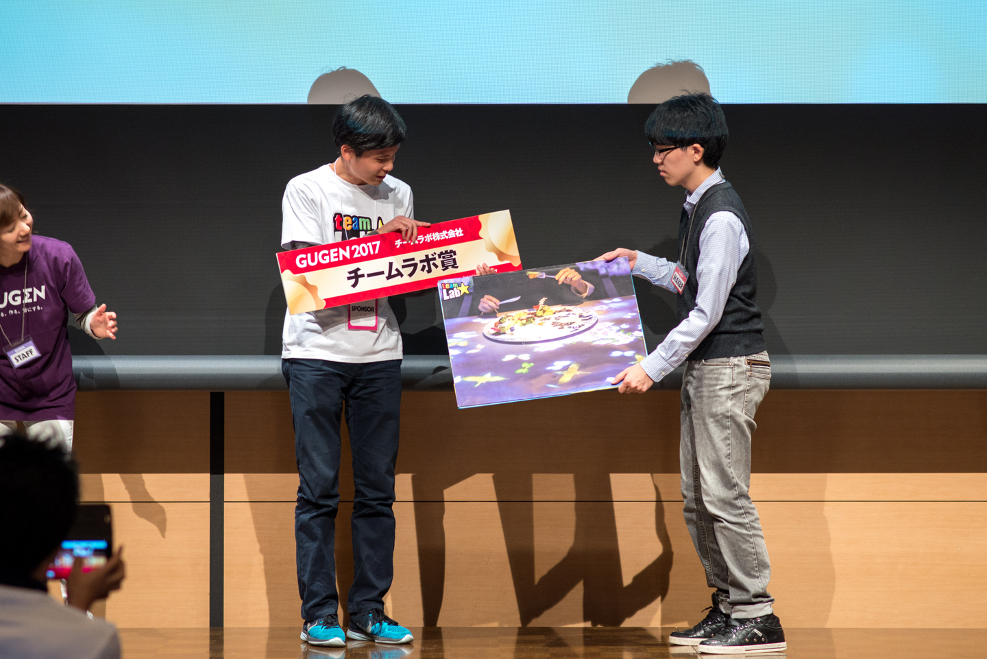 GUGENにはスポンサー賞が設けられており、弊社も「チームラボ賞」を筑波大学有志メンバーの作品「O-thumb」に贈呈させていただきました。
