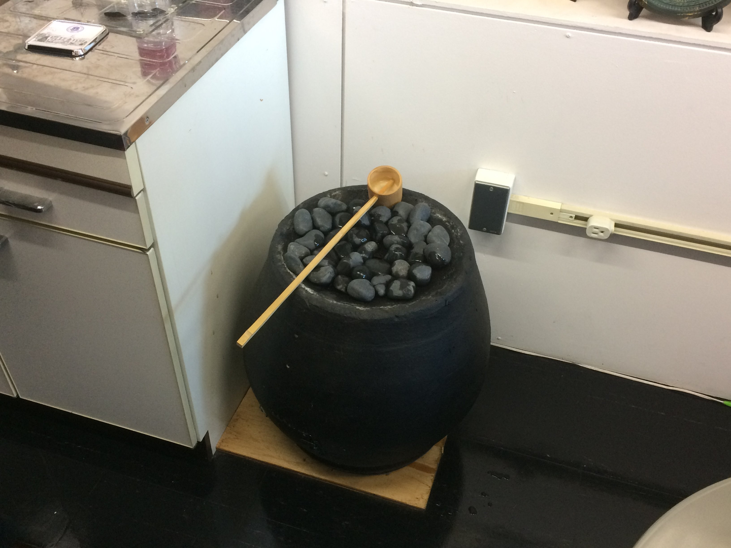 こちらは日本庭園などにある水琴窟。水をかけると、水が滴る色々な音が響きます。大学の職員さんなど色々な人が、わざわざこの音を聞きに研究室を訪ねてくるそうです。こうした音の心地よさの仕組みも解明されているとはいえず、またマイクロホン性能などの限界から現在のデジタル技術では十分に音の再現ができないとのことでした。