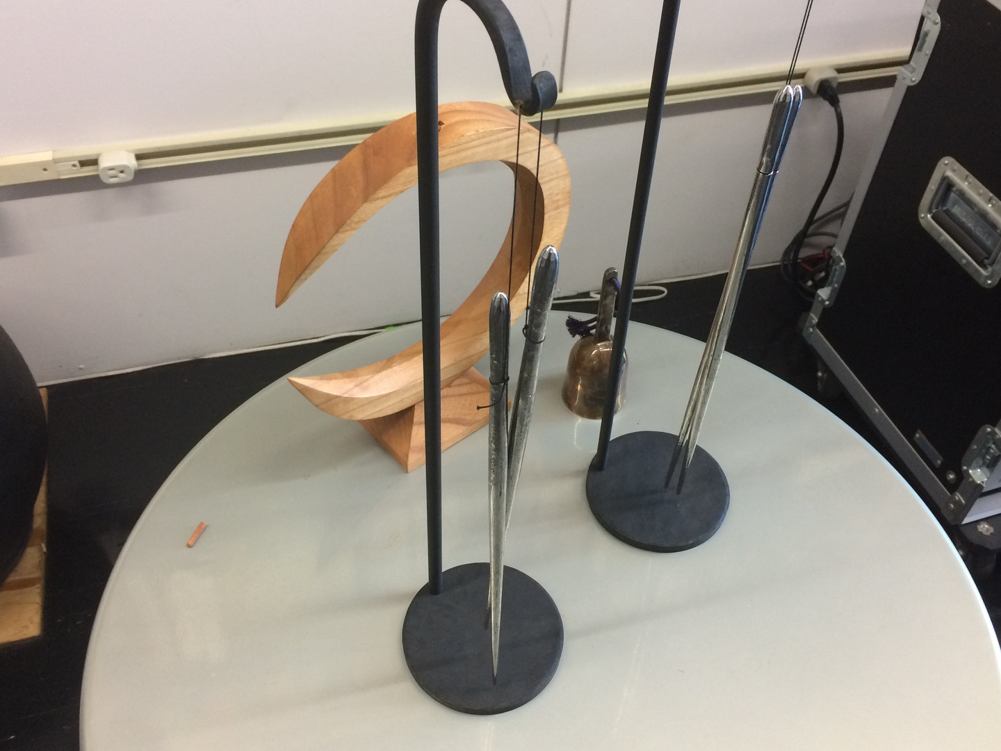 教授室に入ってすぐに紹介いただいたのは、様々な「いい音」が鳴るものたち。上の写真でぶら下がっている鉄の箸は明珍火箸といい、箸と箸を当てるとリーンという澄んだ心地よい音がします。こういった「いい音」とは何なのかという疑問が、菅野研究室の中心的な問題意識のひとつです。