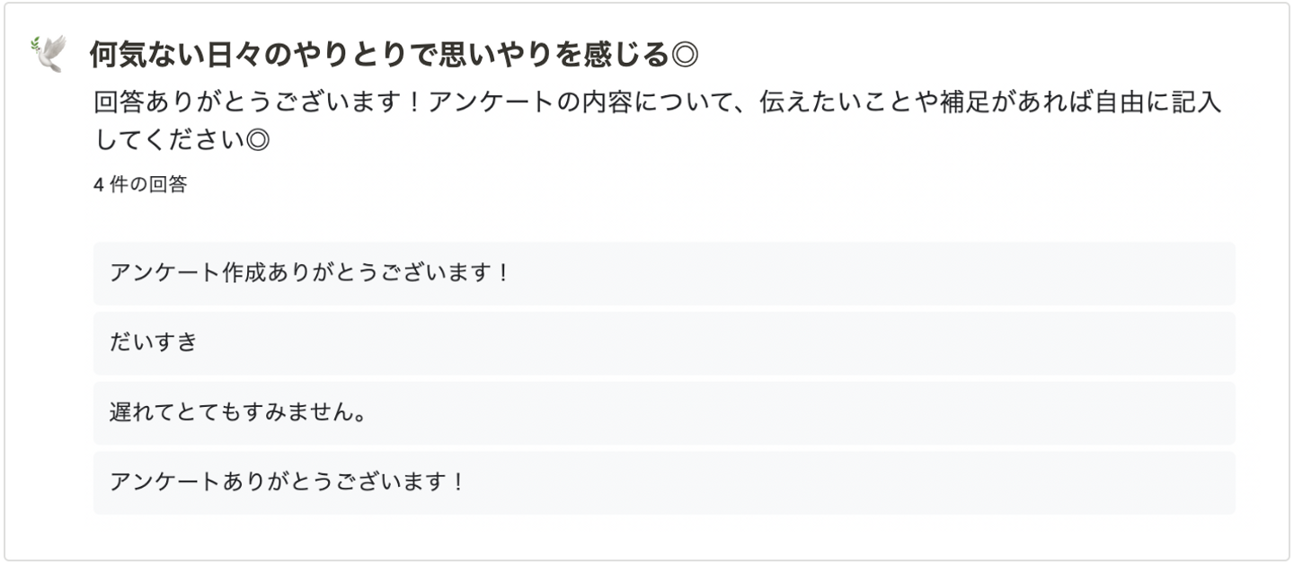 アンケート末尾にコメント欄を設けたところ、こんな投稿が…◎こうしたアソビゴコロあるコミュニケーションがあると、シビアな業務の中でも、ほっこりとした気持ちになったりしますよね。