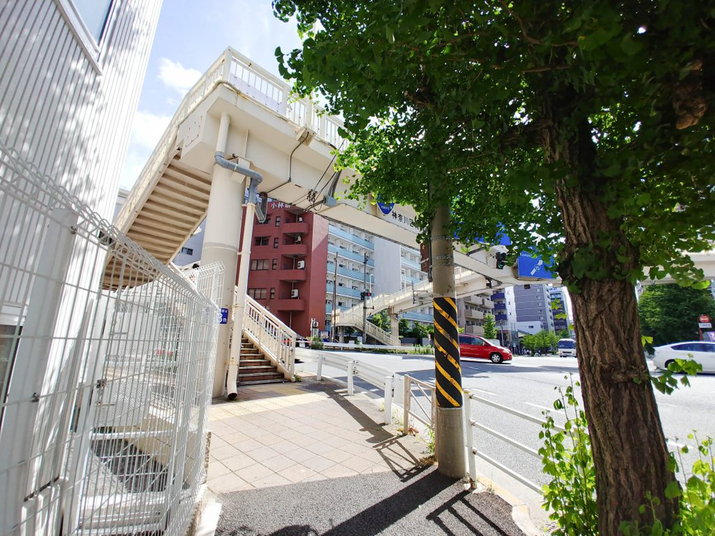 歩道橋を降りたところです。直進します。ずっと大通り(第一京浜)の左側を歩いています。