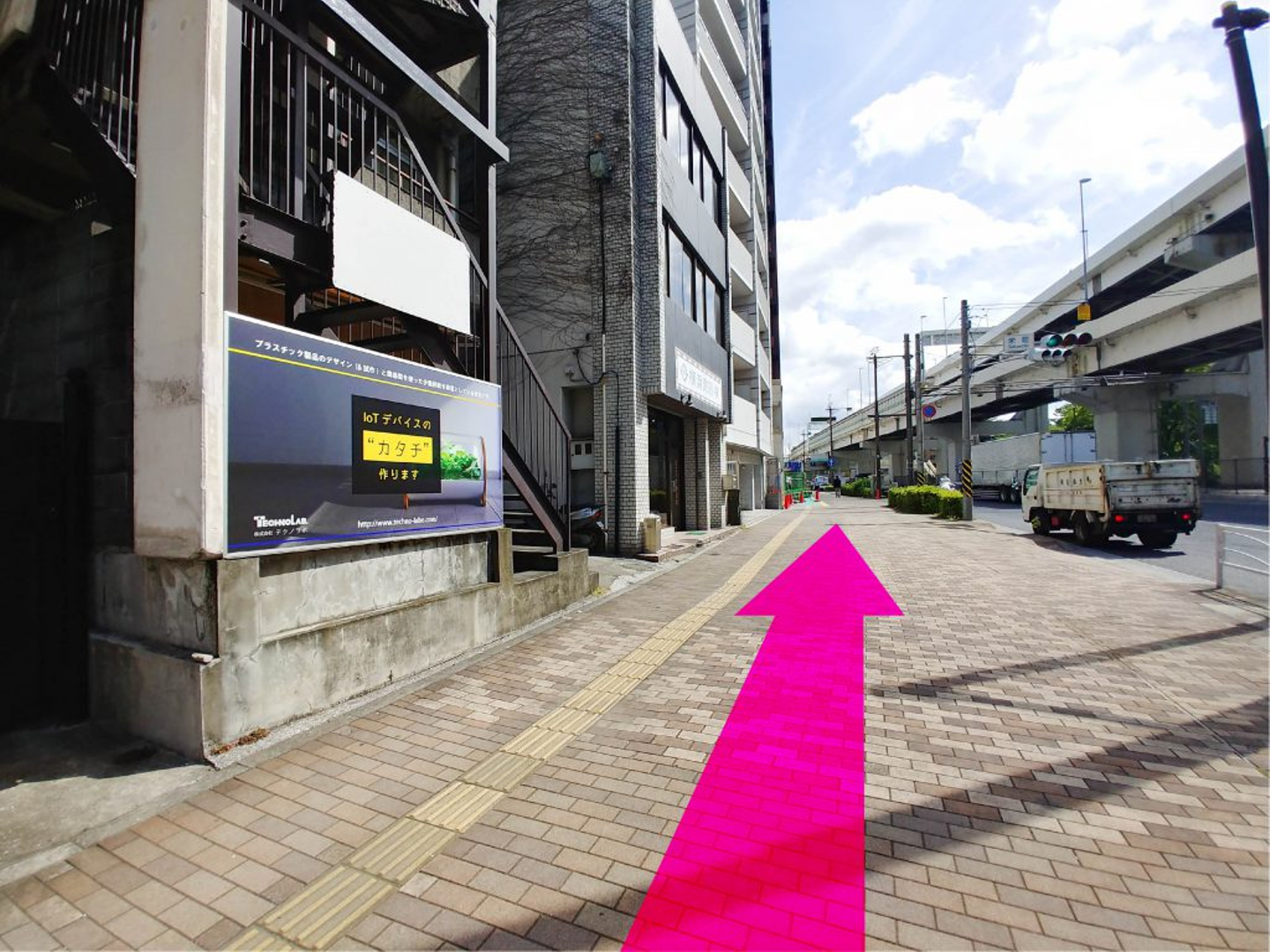 テクノラボの看板が見えたらすぐそこ。看板から2軒目の建物です。