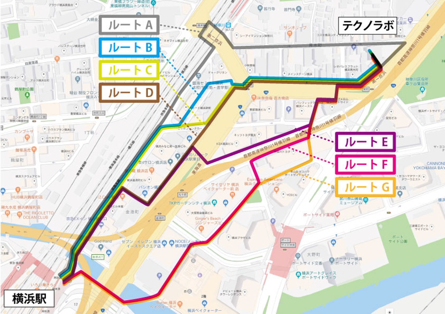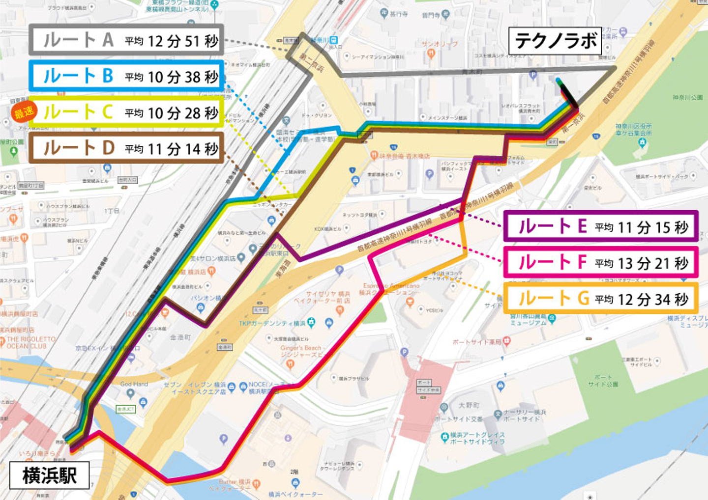 いざ!横浜駅-テクノラボ間、最短ルートレース!!