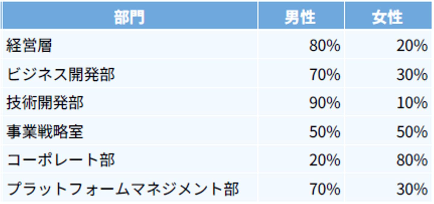 男女比を部門別にみると以下の通りです。