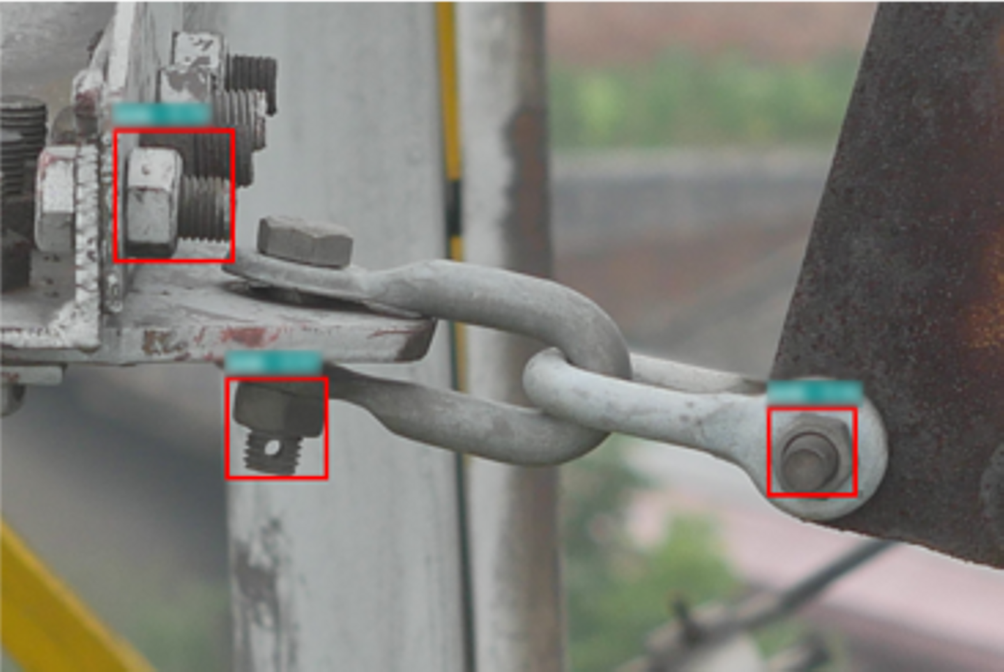 高精度なAIシステムにより特定された、鉄塔部品のゆるみや欠損