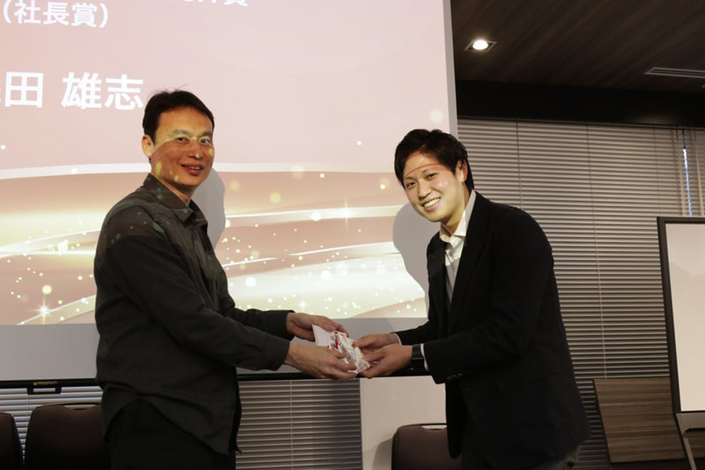「私だけではなく、皆さんに支えられていただけた賞だと思っています。もっともっと早く世界で勝てる企業になれるようなビジネスを見つけて今後も頑張っていきます。一緒に頑張りましょう。」
