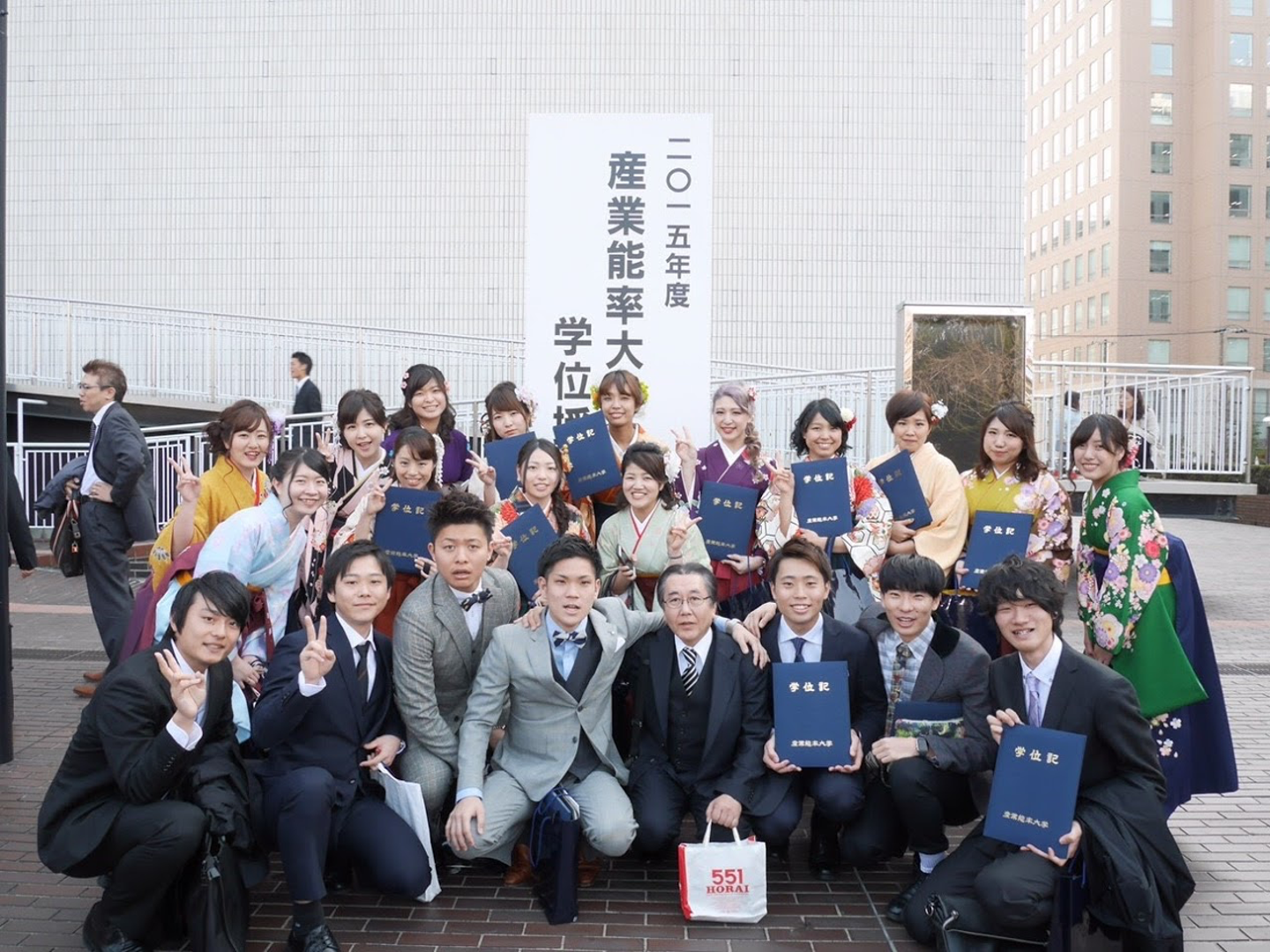 (↑卒業式のゼミ集合写真。真ん中の教授と肩を組んでいるのが三島さん)
