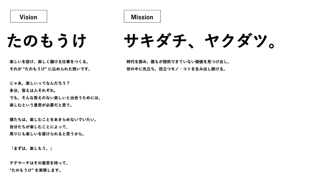 テテマーチが元々掲げていた「ビジョン」「ミッション」について記載させていただくと…