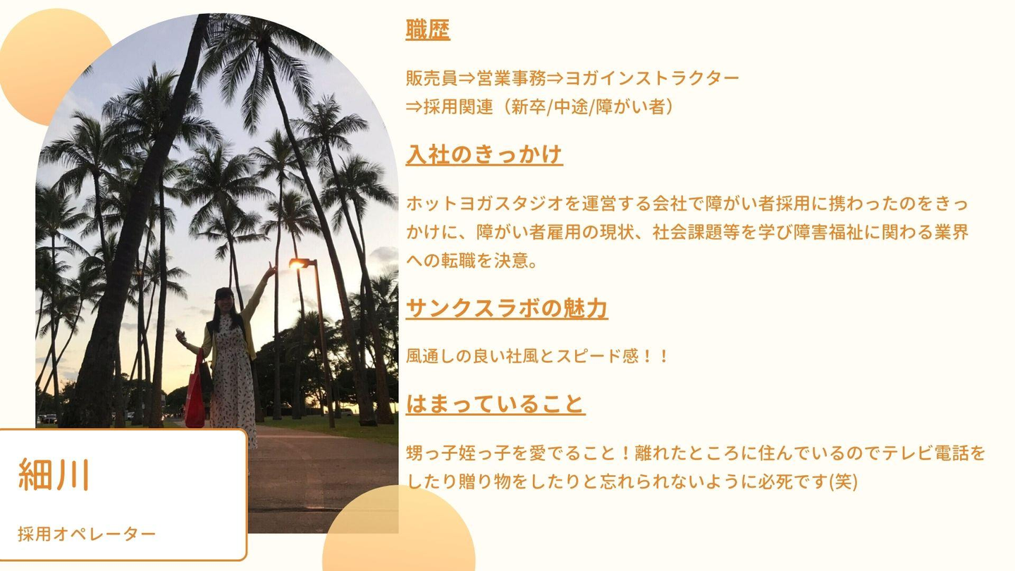 休日は映画鑑賞で、月に3~4回は映画館に通うそうなんです。週末に観た映画の話をしてくれるのですが、解説が上手で、私も観に行きたくなることもしばしばです♪ そんな細川さんからメッセージ! ”一緒に働く仲間も魅力の一つですが、サンクスラボは社員一人ひとりの成長を応援してくれる会社です。新しいことに挑戦できる環境も整っているので、ぜひ一緒に成長していきましょう!”