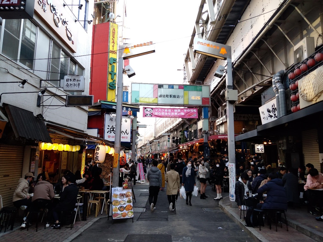 だんだんと上手く丸め込まれるような形で駅前の交差点を通行人が振り向くような大声で喋りながら渡り、アメ横を横切って、猥雑な上野でも少し落ち着いて座れるいつもの酒屋、たる松に直行する。