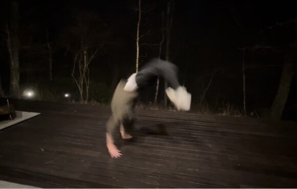 (広々としたウッドデッキは、テンションMAXの先輩がバク転をキメても大丈夫。)