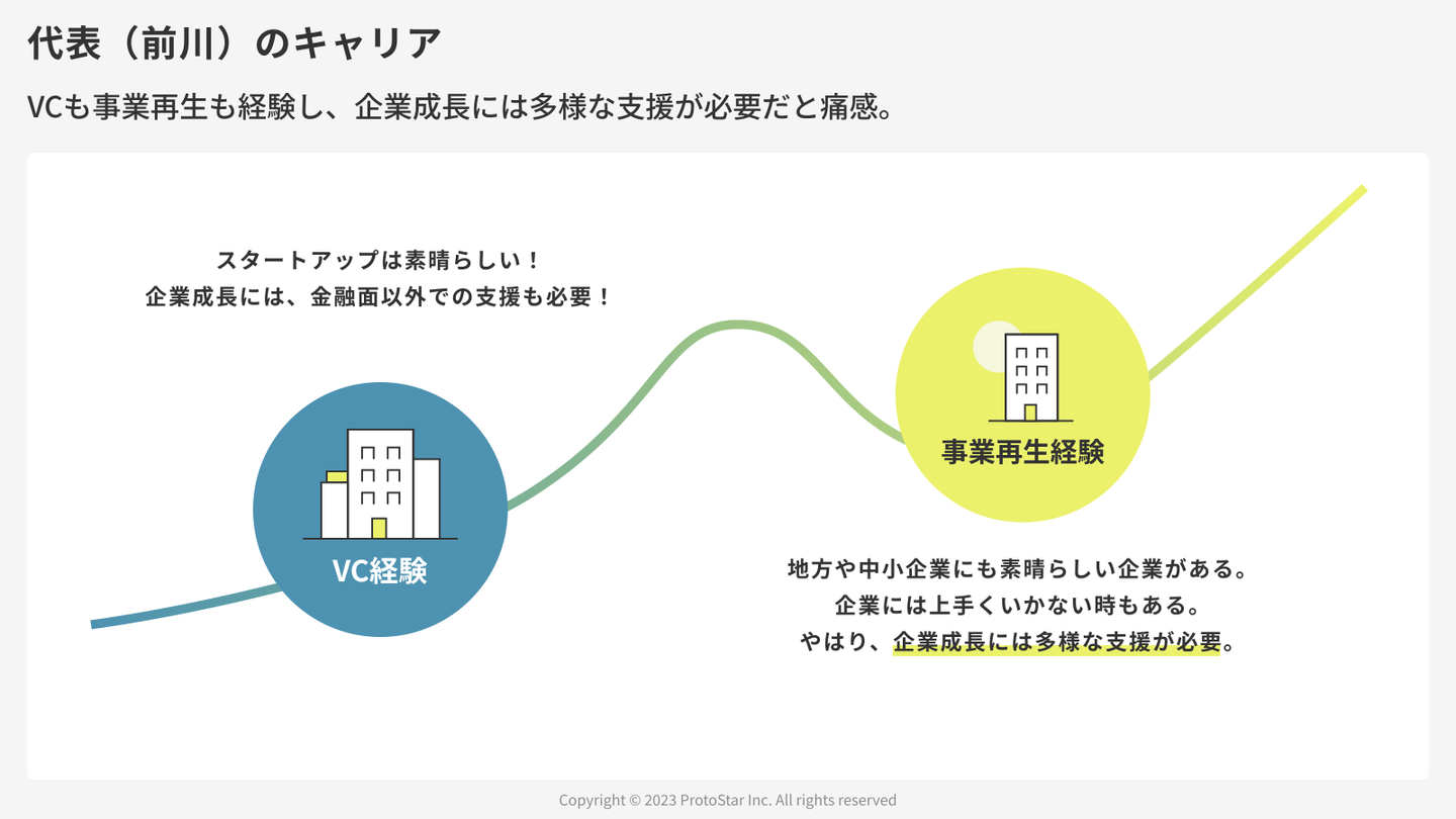 特に、スタートアップの成長にはファイナンスだけの支援でなく、多様な支援が必要なことを痛感し、スタートアップ成長を支援するもっと良い方法があるのではないか?という想いが今のプロトスターへと繋がっています。