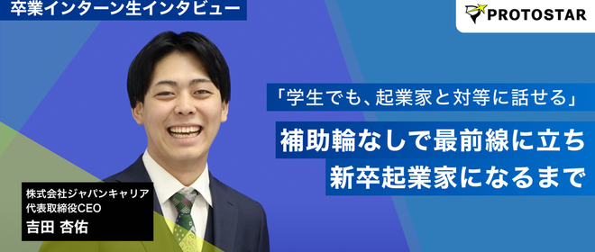 「学生でも、起業家と対等に話せる」―補助輪なしで最前線に立った学生が、起業家になるまで。ジャパンキャリア代表・吉田杏佑が語る、プロトスターで得た“度胸”