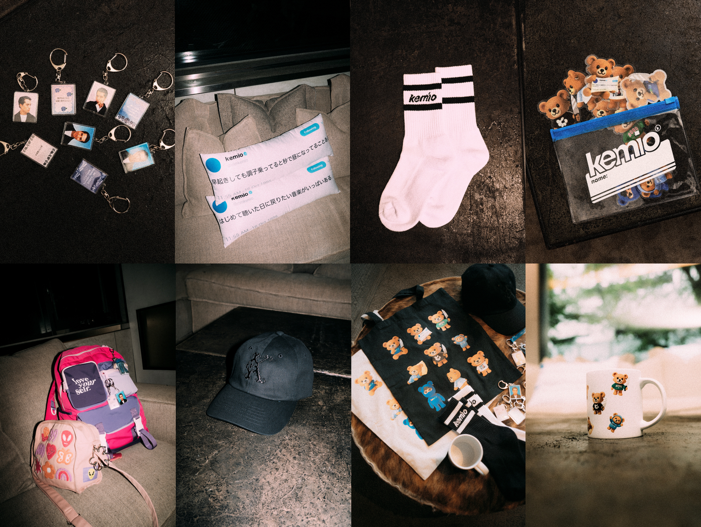 ファンの方々の日常がちょっと元気になったり「明日も頑張ろう」と思えたりするようなアイテムを作りたい──そんな思いで始動したkemio store。kemio自身が30歳を迎え、コレクション始動から5年目という節目に、ひとつの区切りとして発表した記念すべきラストコレクションは、フラワーのグラフィックが目を引くアパレル商品や、キャラクター keddyがデザインされた商品のほか、人気アイテムの「ツイート ピロー」を新たに商品化するなど、kemio storeらしいエッセンスが散りばめられたラインアップとなっています。