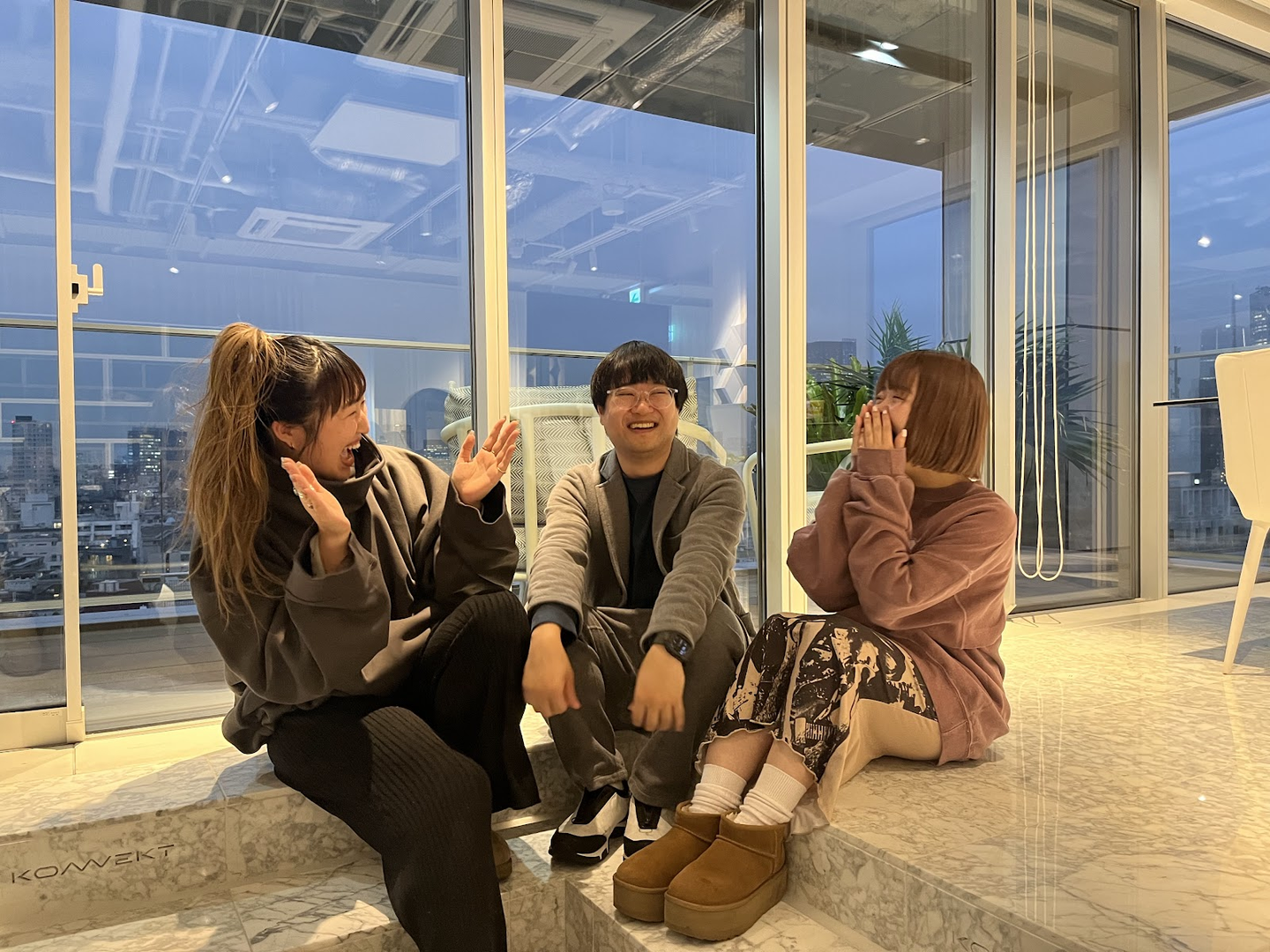 広報・経理、生産管理、プロジェクトマネージャーというバラバラな役職の3名ですが、入社1年目という同じ視点から、KONNEKTでの業務や会社の雰囲気についてお話ししていただきました。