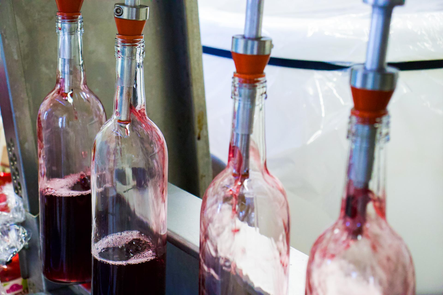 このワインをボトル詰めの機械にし、ボトルをセットし半自動でワインを注いでいきます。