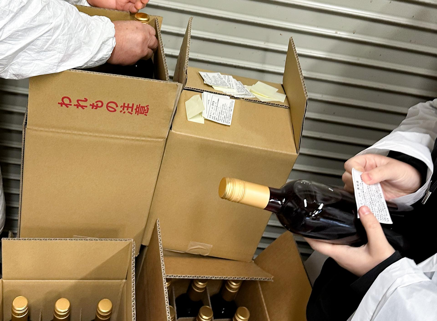 最後は成分表示のラベルを一本ずつ貼り、今回の作業は終了!