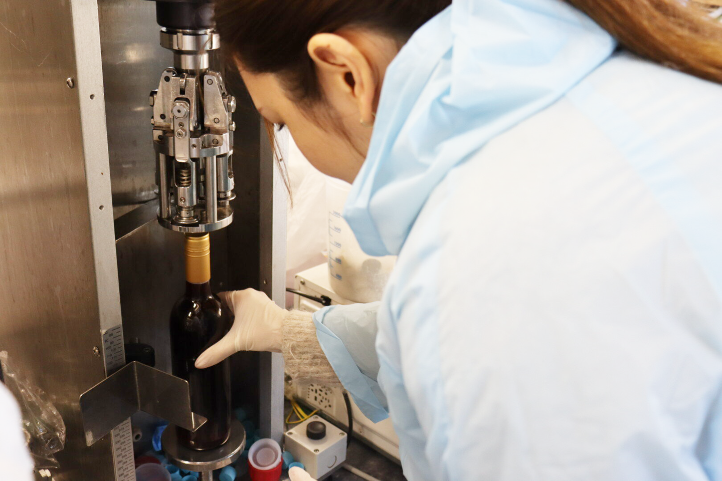 ワインを注いだ後は、スクリューキャップを専用の機械で締めていきます。