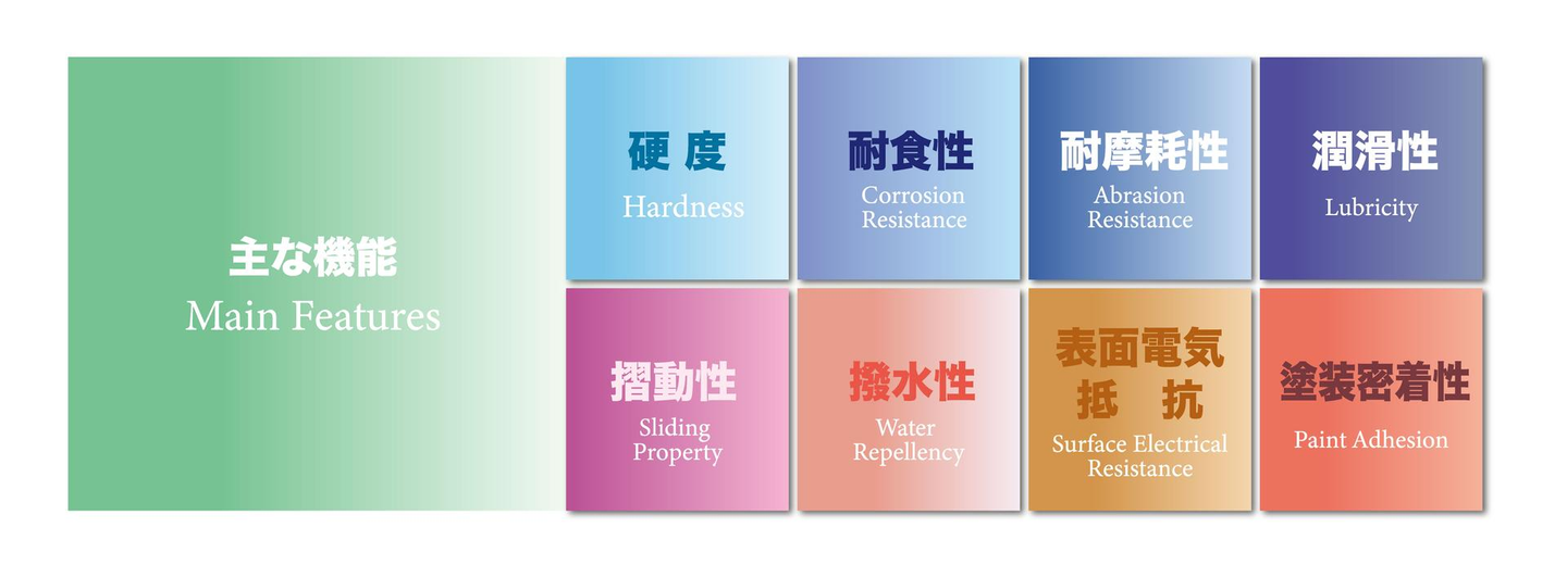アルマイトとは、アルミニウムを陽極(+極)で電解処理し、表面に人工的に酸化皮膜を生成する表面処理です。アルミニウムの特徴として、鉄の3分の1の軽さがある反面、柔らかく傷などもつきやすい側面が理ありますがアルマイト処理をすることによって鉄と同様の硬度にすることができるなど、下記のような機能をもたらすことができます。
