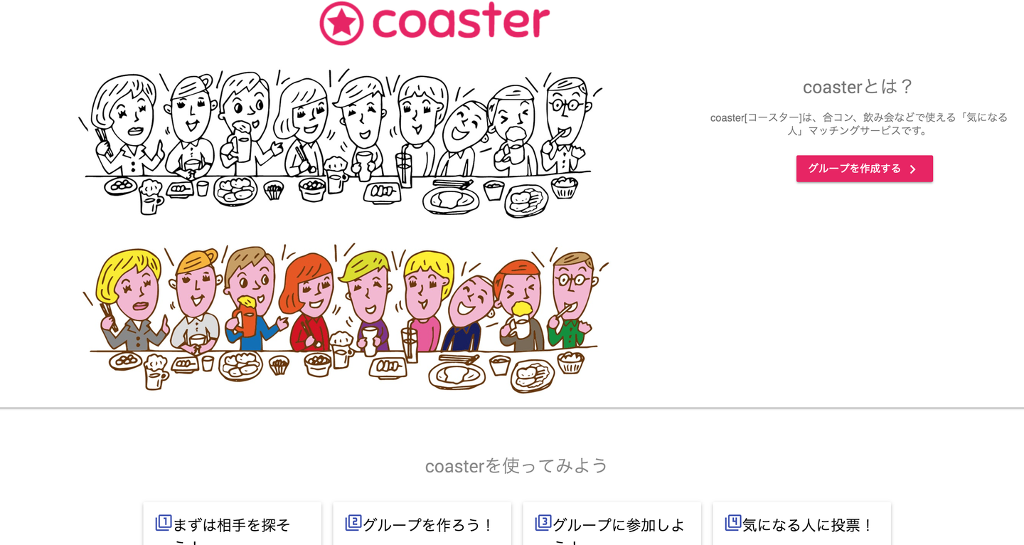 --- 前に見せてもらったプライベートで作った合コンでのマッチングサービス「coaster」もいいですよね
