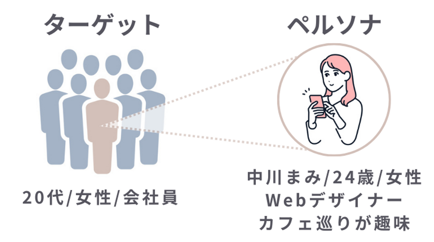 ここでいう「相手」のことを、マーケティング用語で「ペルソナ(商品やサービスを利用している典型的なユーザー像)」と呼びます。