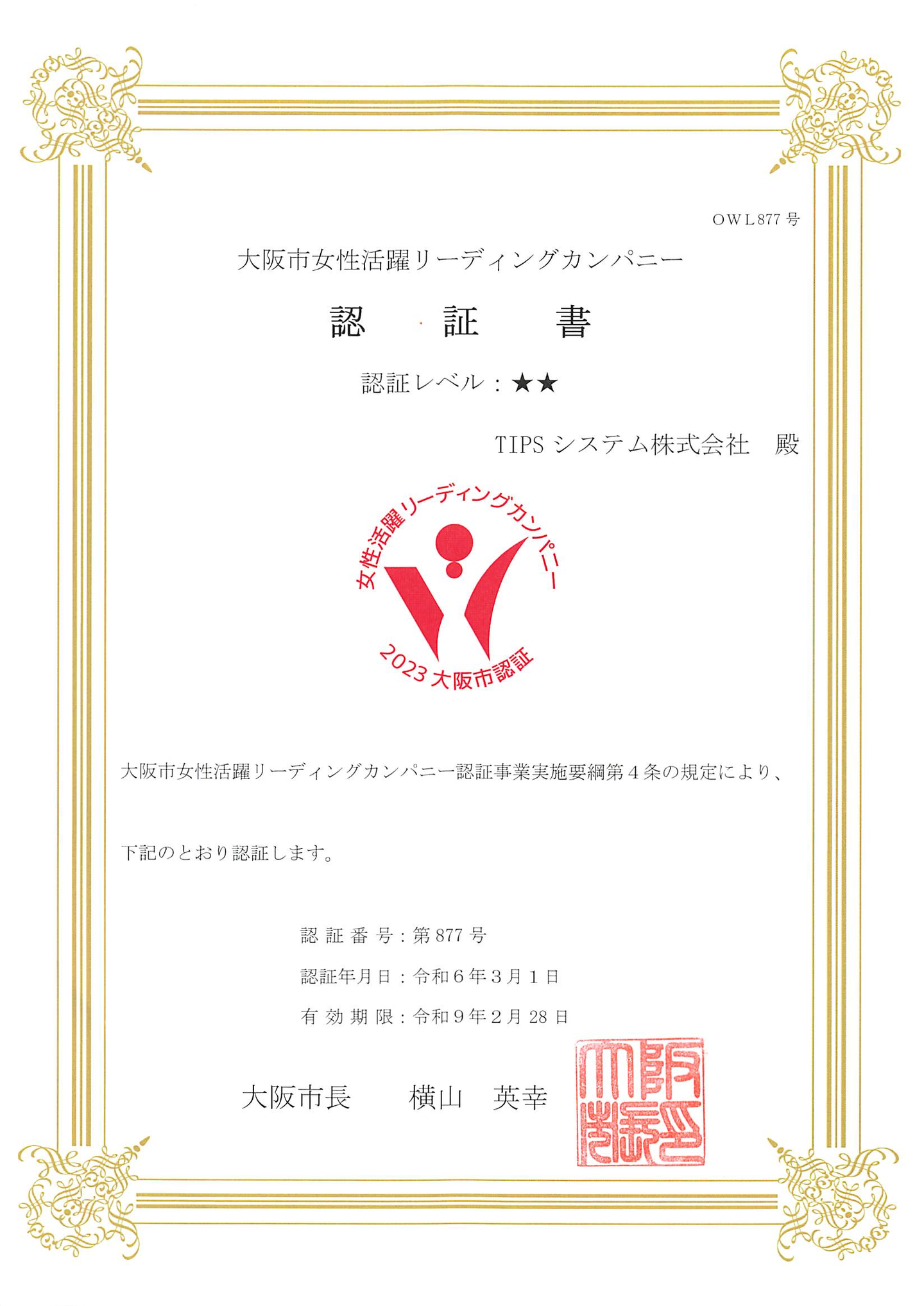 について積極的に推進する企業等を、大阪市が定める基準に則って認証される制度で、平成26年度から認証事業が開始されています。