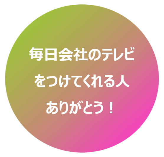 トライバルには全8台のテレビが備え付けられており、常に主要テレビ局の情報がキャッチできるようになっています。早い時間に出社し、自主的にテレビの電源をつけてくれている人たちのおかげ。ありがとう!