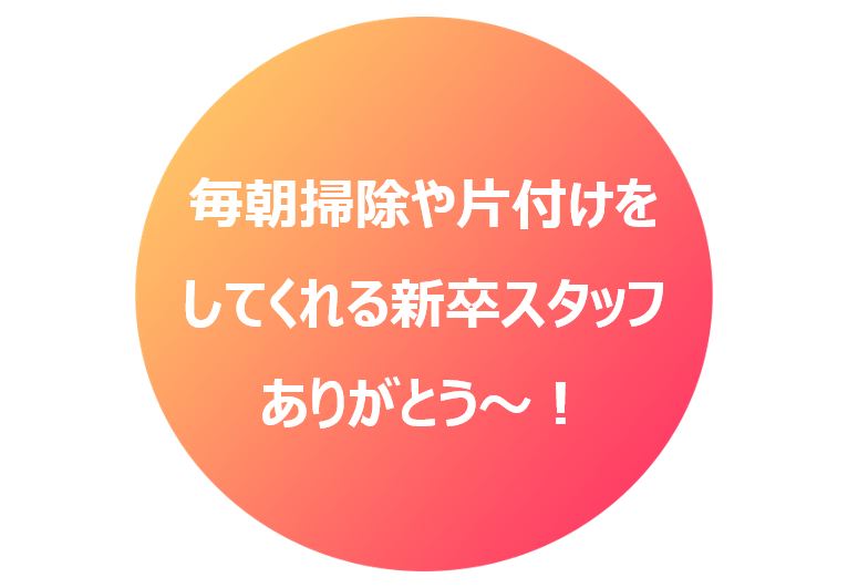 トライバルでは、新卒スタッフが協力して毎朝オフィスの掃除や備品の補充などをしてくれています! みんなのおかげで毎朝気持ちよく仕事をスタートできています! ありがとう!