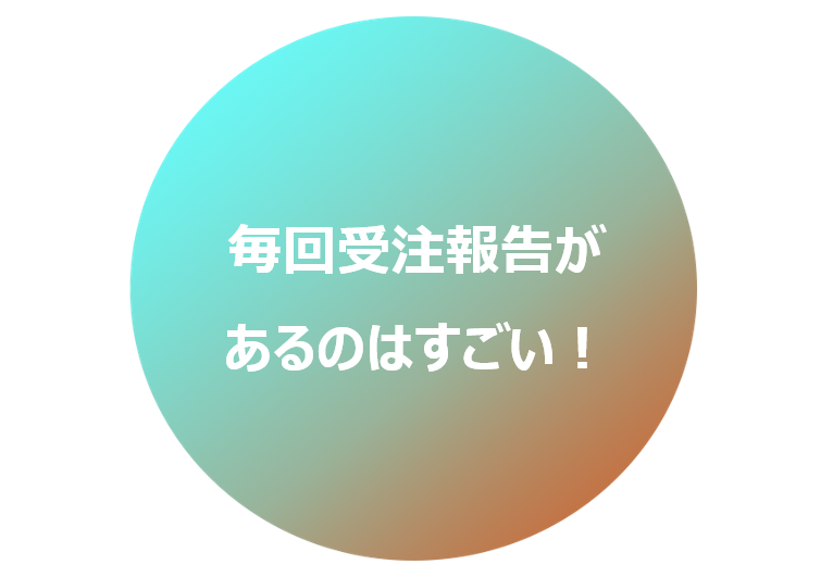トライバルでは毎週月曜日に朝礼を行っています。昨年度下期はすべての朝礼で、一度も途切れることなく受注報告が行われました。すごい!