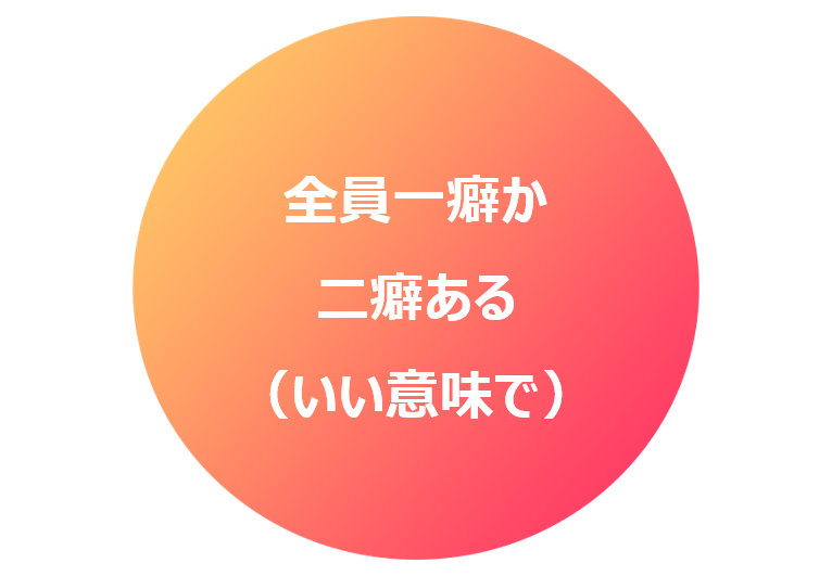 「いい意味で一癖あるスタッフが集っている」というのは、採用担当としても同意するところ。そういえば、「わが社は〇〇な人が多い」というお題でも「何かとクセが強い」というあるあるが。