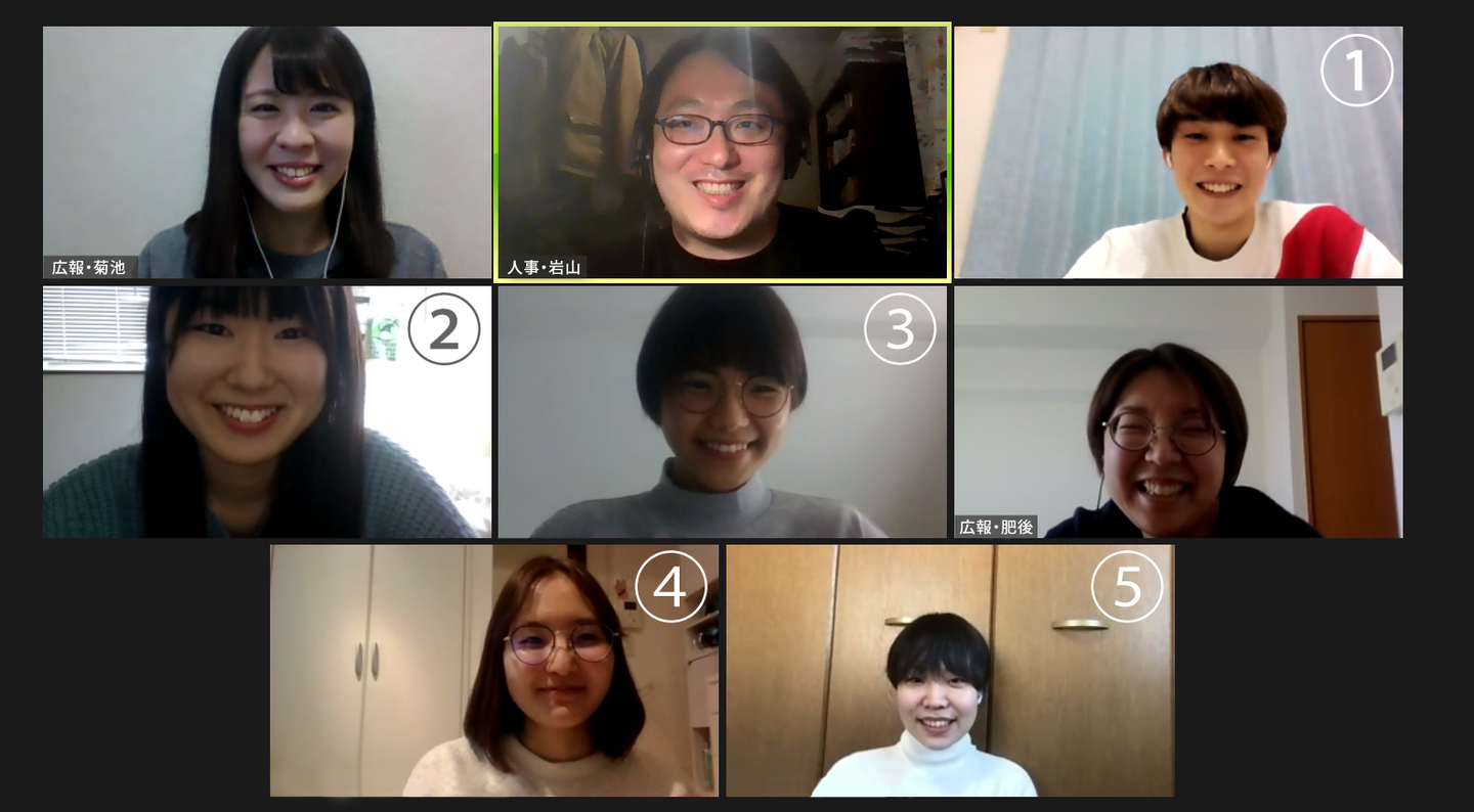 太刀川:プレゼン選考中、社員の方々とのオンラインランチ会があって、毎日いろんな社員の皆さんと交流できたことが印象に残っています。先輩たちが私たち学生を知ろうとしてくれていることが純粋に嬉しかったです! 会社や人の雰囲気がよく分かるランチ会は今後も続けてほしいですね。