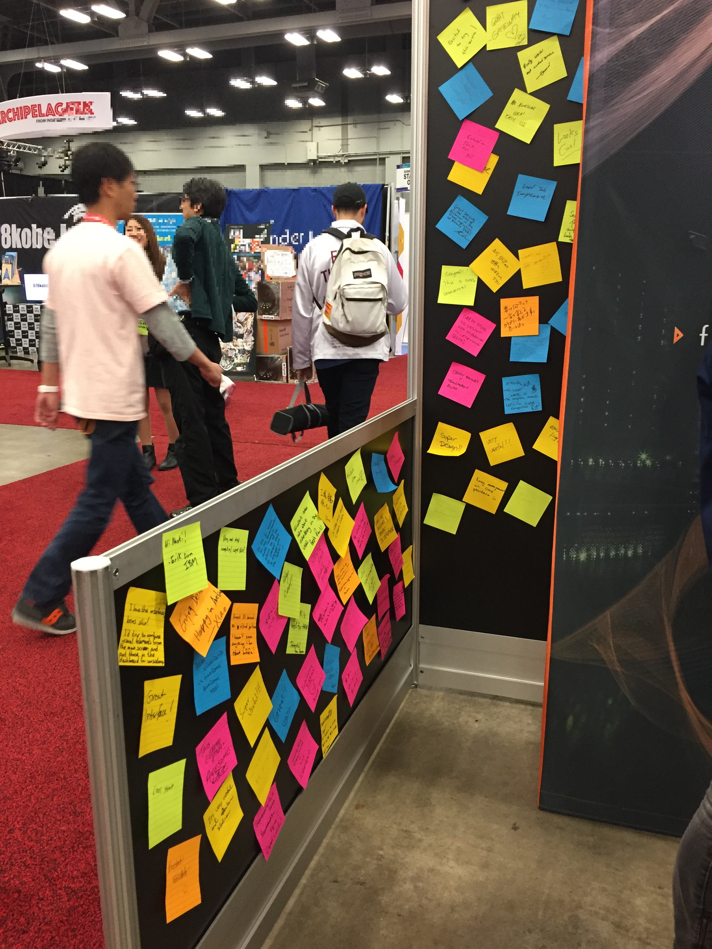 また、XTREME DESIGN様のブースでは、来場していただいた方に付箋でメッセージをいただくという面白い取り組みを行っており、多くの方がXTREME DESIGN様の事業や新しいデザイン・コンセプトへ友好的なコメントを残していっていました。