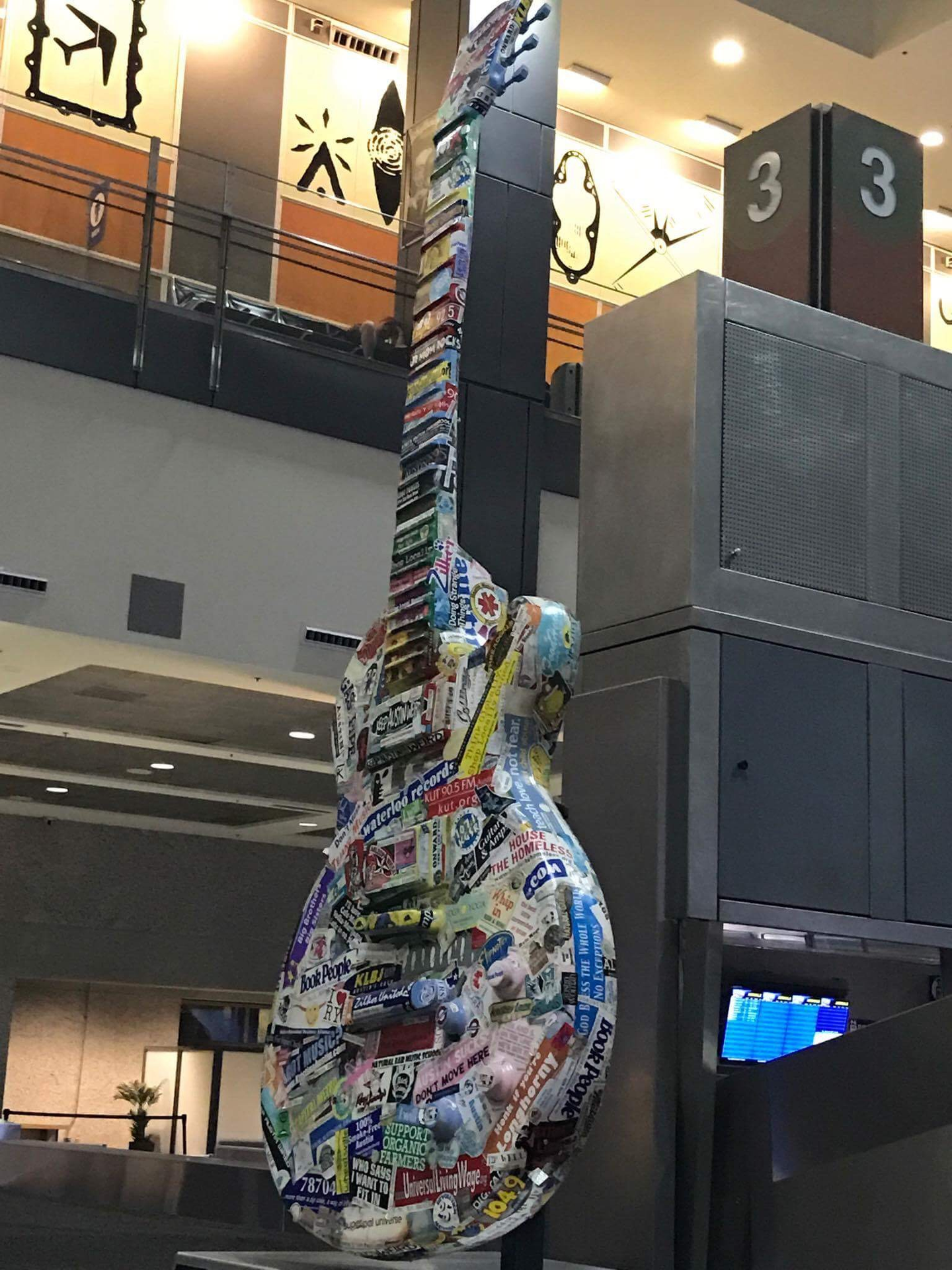 (オースチン空港の巨大なレスポール。ただこの時、自分の預入荷物が一時行方不明に...)