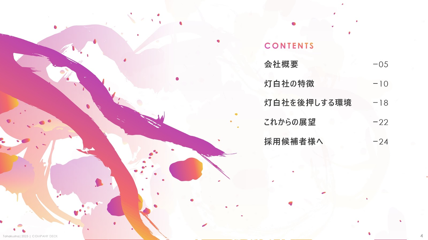 灯白社がご自身のキャリアや価値観と合うか、ぜひ当社の採用ピッチ資料をご覧いただき、判断材料にしていただければと思います。