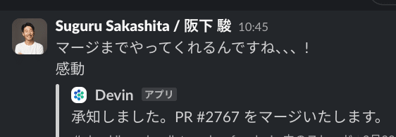 その日は、オフィスでたまたまCTOの西平とLLMチームの近くに座っていました。LLMに関する会話をしていたようで「Devinって…」というキーワードが聞こえました。