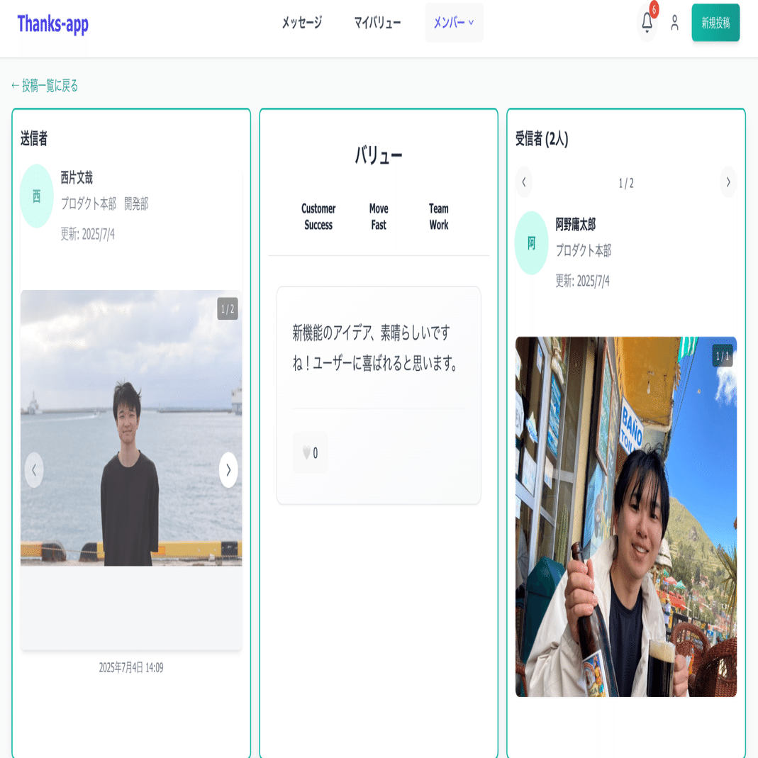 社員がお互いに「ありがとう」という感謝や称賛の気持ちを、アプリ上で気軽に送り合えるようにしました。