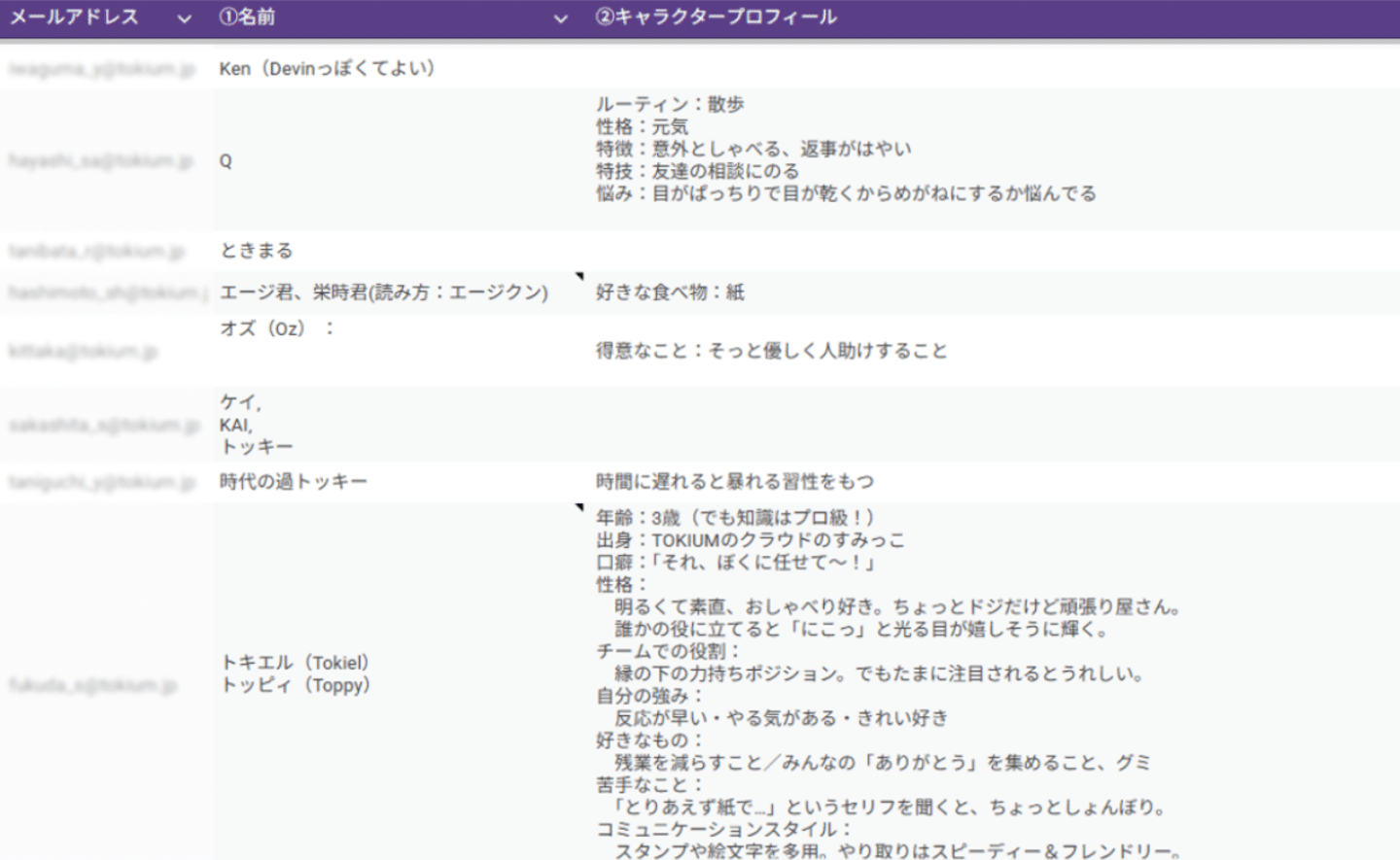 TOKIUMが会社として大々的に推進していく「経理AIエージェント」の“顔”となる重要なキャラクターの名前を決めるため、プロジェクトメンバーには、取締役の松原さん、コーポレート本部長の西山さん、そしてインターン生の私など、各部署からメンバーがアサインされました。