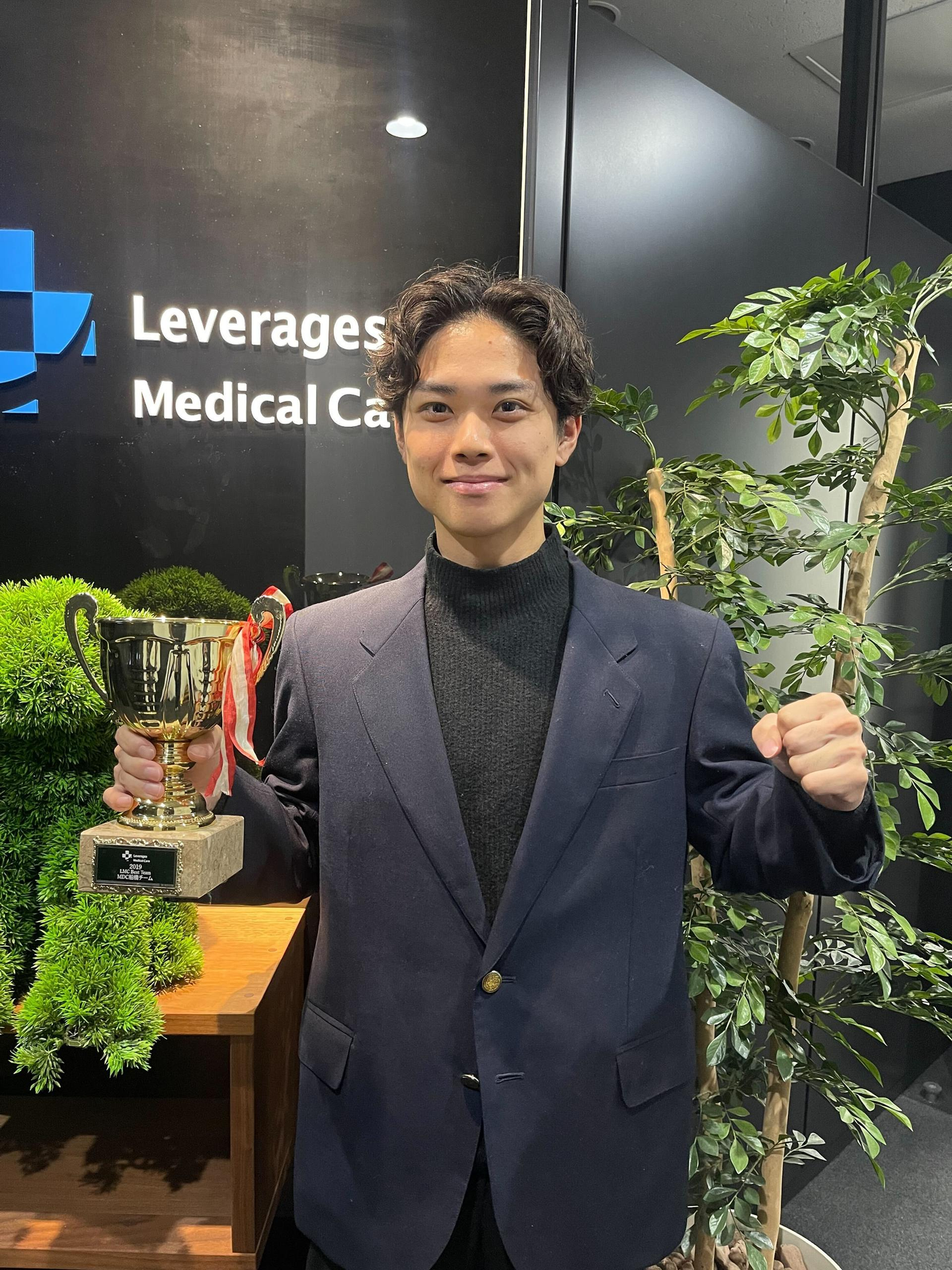 一樹さん:レバレジーズ1年目の忠地一樹です!事業部は介護スタッフィング事業部っていうところに配属されていて、簡単に言うと介護の派遣職員の人材紹介をやっている事業部になります!実績で言うと、9月に新卒グランプリが開催されて、そこで優勝して、かつ事業部1位を獲得することができました!10月にも事業部1位になれたので、2か月連続になりますね!よろしくお願いします!