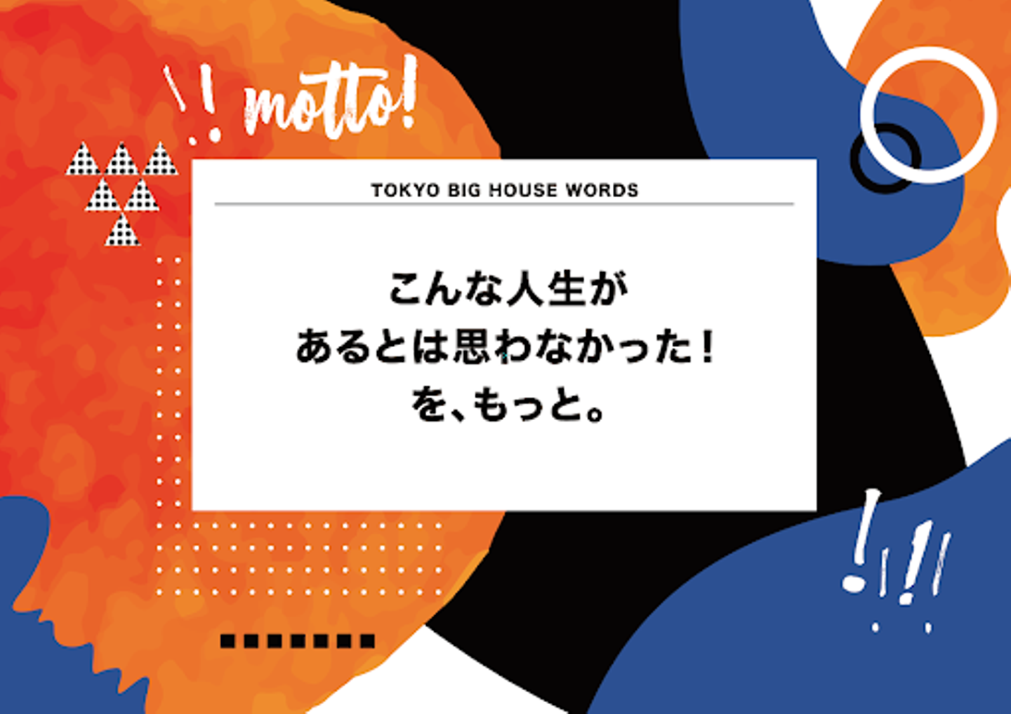 TOKYO BIG HOUSEの企業スローガンは、「こんな人生があるとは思わなかった!を、もっと。」です。