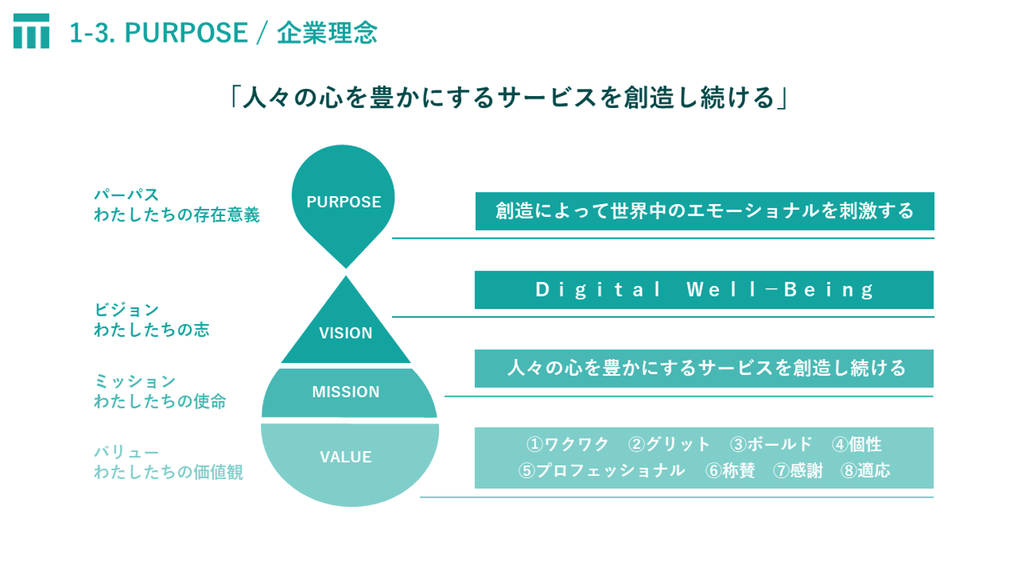 当社は、ビジョンに『Digital Well-Being』を掲げ、人々の心を豊かにするサービスを創造し続けるための事業展開を続けております。変化の多い現代ですが、多くのチャンスを捕らえて成長していきたいと考えています。また、当社のサービスを通じて世界の人々の不安や問題を解決できることを目指しています。
