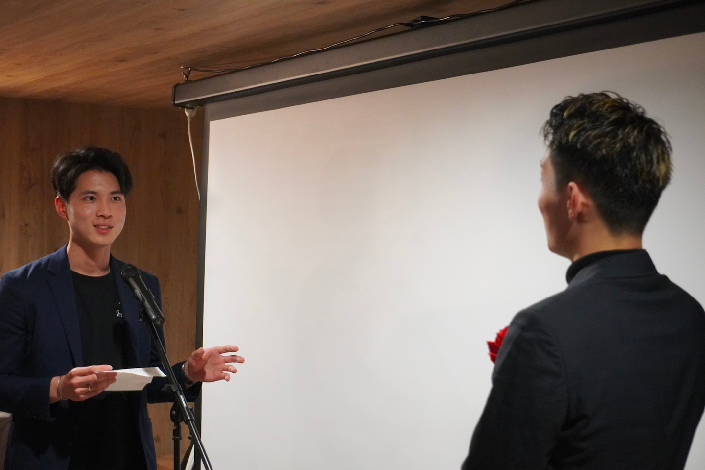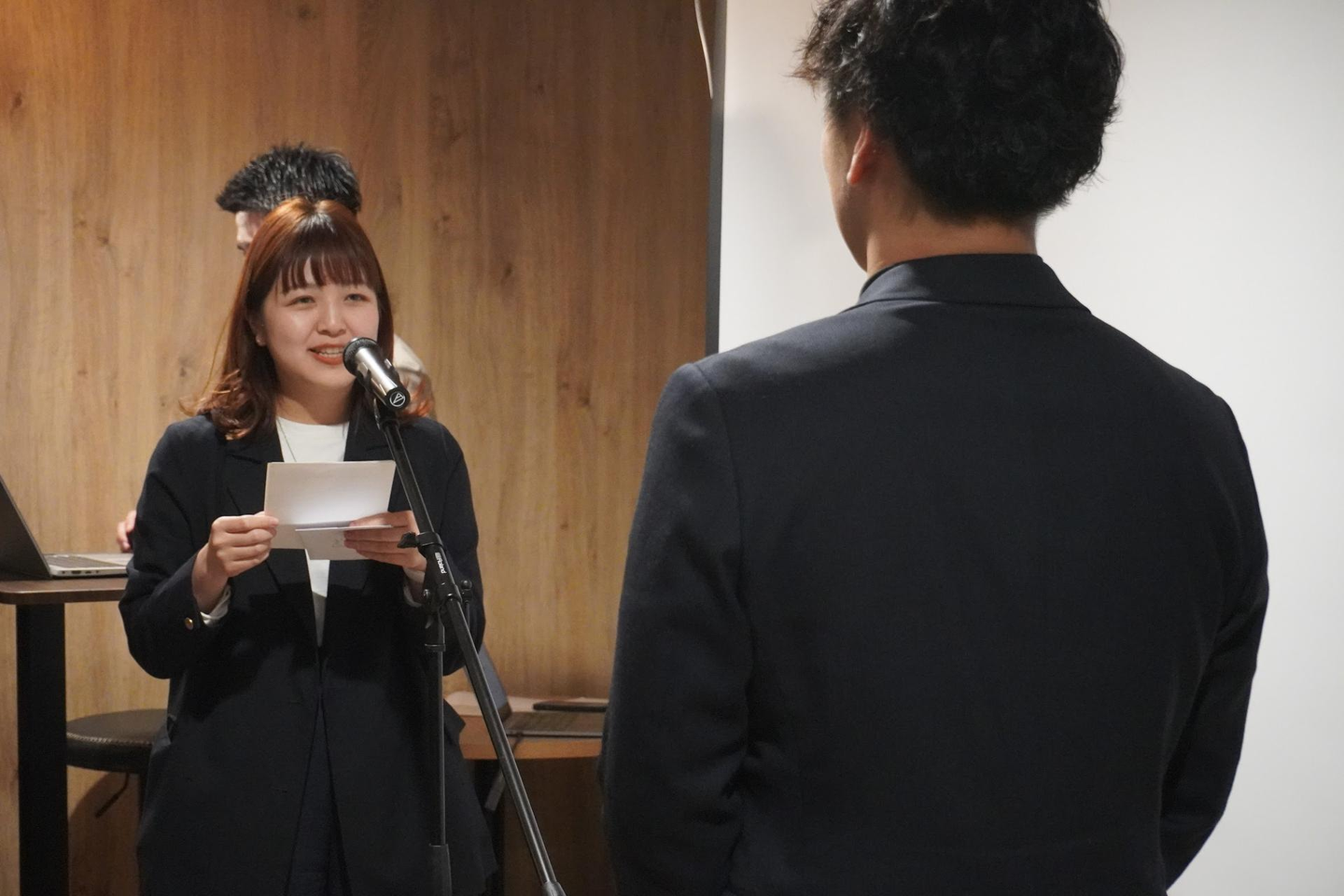 ▲3月で大学を卒業した営業マネージャー・関さんへ、執行役員・穂積さんから手紙の朗読