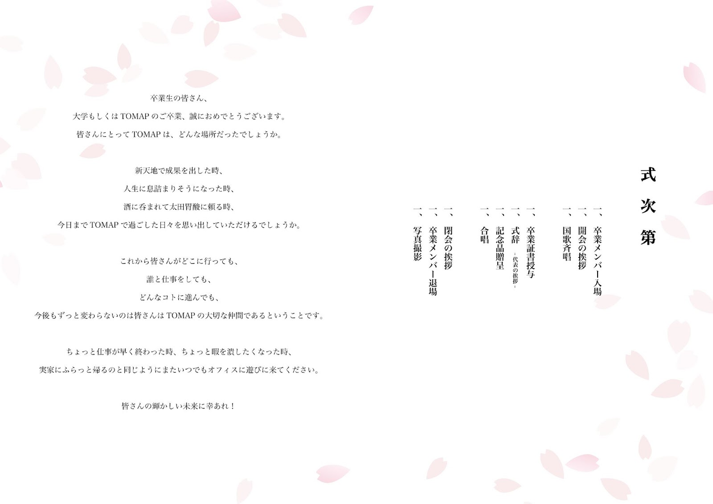 ご卒業の節目ということで、代表として僭越ながらこの場を借りて、大学生活ではなく、TOMAPでの思い出と感謝を伝えさせていただきます。
