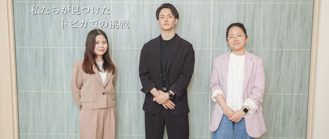 こんにちは!株式会社トピカです。 「話題が始まる場所を創り、ココロをつなげ、日常に彩りを。」をミッションに、20~30代の男性社員14人、女性社員10名、インターン生2人で和気あいあいと仕事に取り組んでいます。 私たちは動画マーケティング事業、動画メディアの運営を主に行っています。 社内には、営業・制作・運用のポジションがあり、各々が自分の分野に限らず、チームとしてクライアント様と一緒に成果を残す体制を整えております。 個性的な私たちと一緒に、動画とSNSを通して人の「ココロ」を動かしてみませんか?